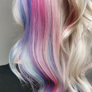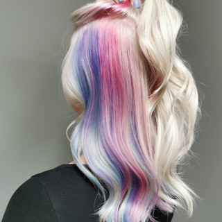 Denna gången blev det lite regnbågs-inspirerat och vi älskar detta resultatet 🙏🏼 Färgerna gör sig så snygga mot det resterande isblonda håret, vad tycker ni?